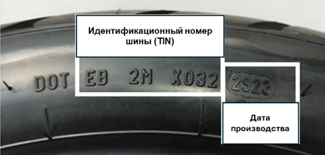 1) Идентификационный номер шины (TIN) расположен на боковой стороне шины.